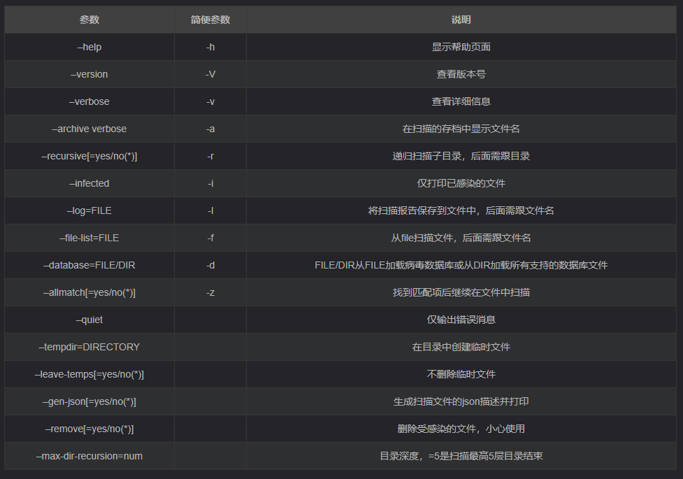 ClamAV常用参数