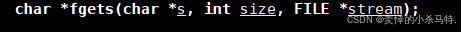 也就是:从流中获得字符最多是size个到串s中;读取成功返回这个s;否则返回NULL。