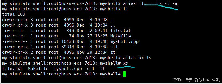 这里比如我们的ll就是alias起别名来的;下面我们就来模拟实现一下(简单版本的alias)。