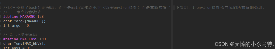 先说一下想法:这里可执行程序,把它当成真正shell的bash;大部分命令都是通过调用子进程来程序替换完成;有些命令是内建的,故需要自己完成;而首先这个程序会继承原本bash的那张环境变量表;这里我们模拟实现一下真正的bash的那两张表:也就是说我们用数组,通过拷贝原bash的表,改变environ指针来维护我们的数组(也就是我们自己的可执行程序要调用的那张环境变量表) :这里补充一点:对于环境变量如果我们env命令:它是通过environ指针来进行查找打印的;局部打印就不一定了。 后面我们具体实现的时候会有所体现,之后我们道来。