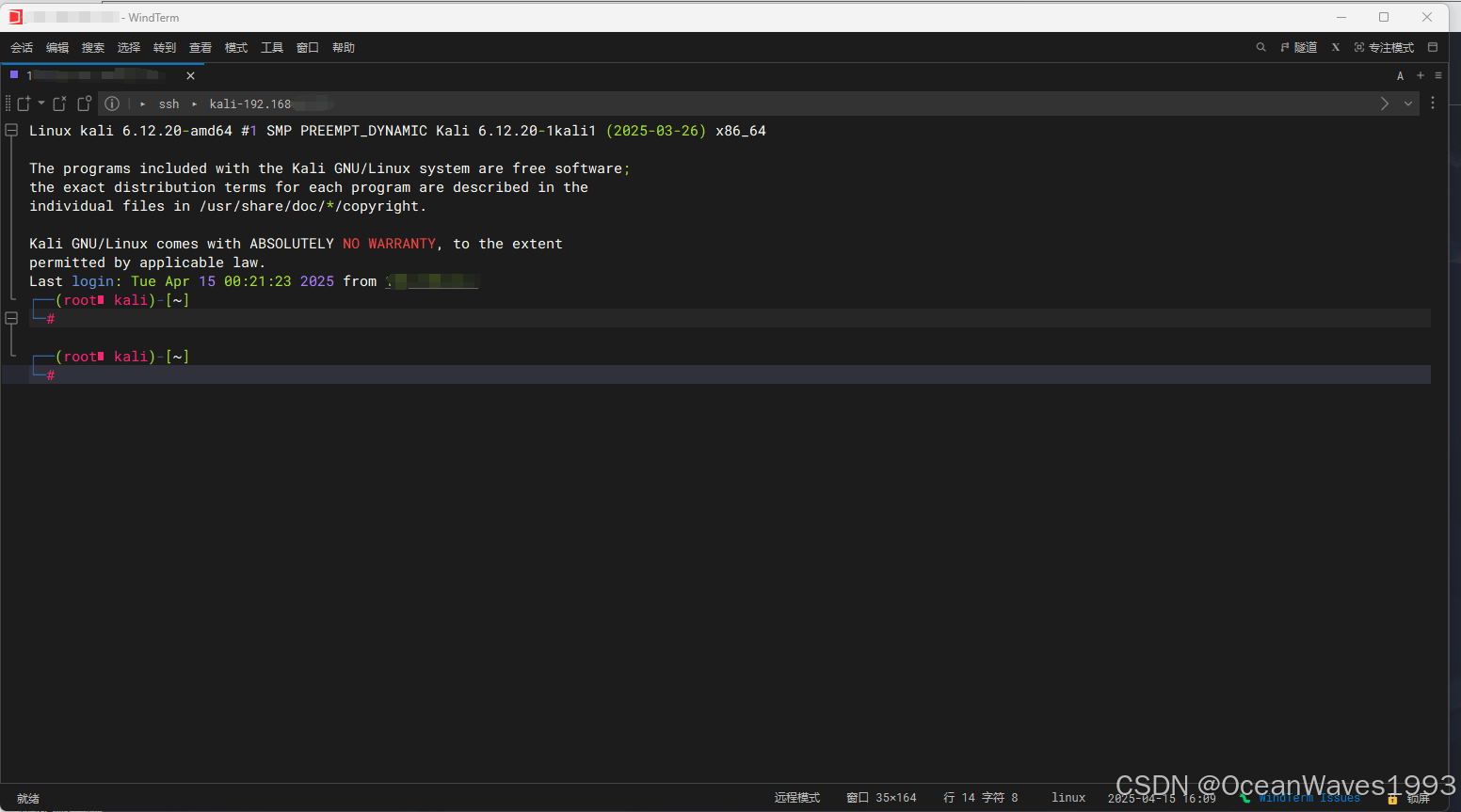 再次使用ssh远程登录 成功