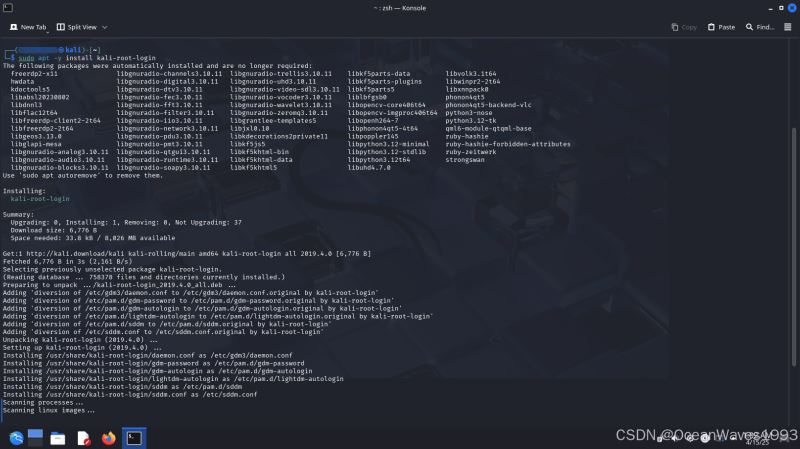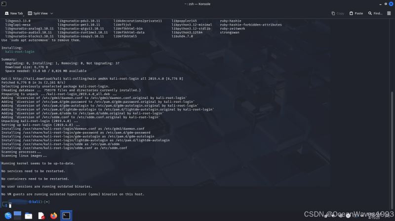 我们将首先安装kali-root登录,以更改多个配置文件,这些文件将允许我们通过GNOME GDM3和KDE登录提示登录到root帐户。使用其他桌面环境时,不需要执行此步骤: