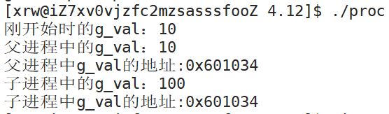 可以看到这里父子进程中g_val的地址是相同的,而g_val的值却是不同的。