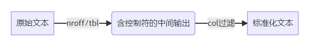 # 处理man手册输出 man ls | col -b > ls_manual.txt # 处理tbl生成的表格 tbl data.t | nroff | col -x > formatted_table.txt