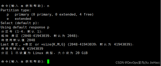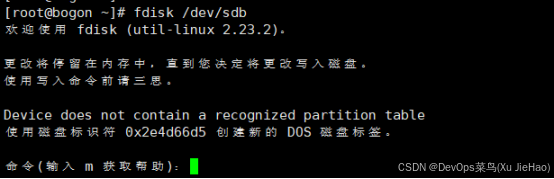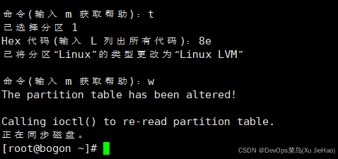 分区建好了,为了让之后的LVM可以使用到这个分区,我们需要在新的分区 /dev/sdb1 上创建物理卷PV。