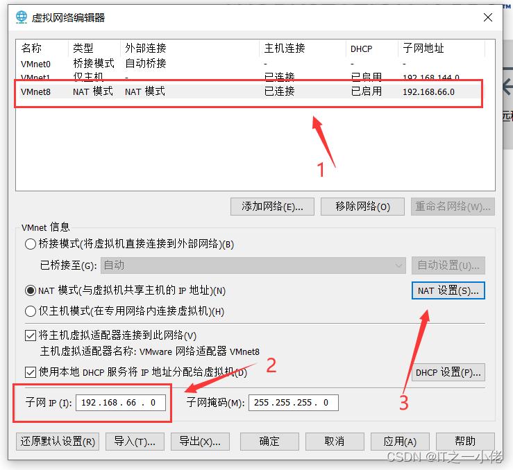 主机中vmnet8:192.168.66.10