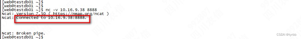 用法为 nc -v ip prot,如下表示端口连接成功,另:nc还可以模拟监听端口,nc -lk port