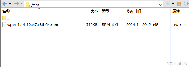 2、将下载好的wget文件用Xftp或其他上传软件将文件上传至 /opt下