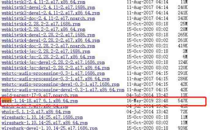 登录到wget官网上下载最新的wget的rpm安装包到本地 http://mirrors.163.com/centos/7/os/x86_64/Packages/