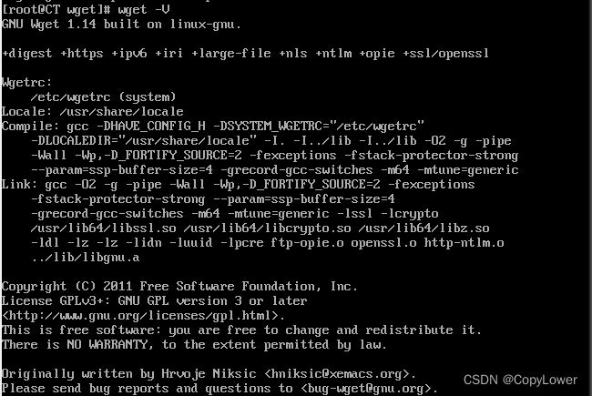 通过wget -V可以查询wget的版本信息内容,至此看下如下信息,则表示安装成功,可以正常使用wget命令