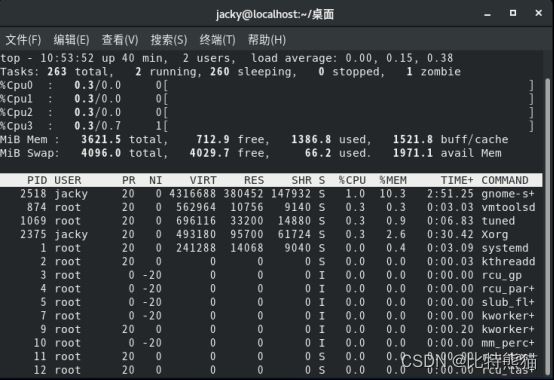 使用“top”命令查看: