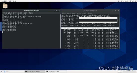 对于线程绑定,我们需要借助pthread库,通过函数pthread_setaffinity_np来设置绑定cpu关系。我们通过top查看,会发现cpu0和cpu3使用率达到100%。