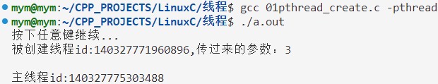 printf("被创建线程id:%lu,传过来的参数:%dn", pthread_self(), var);