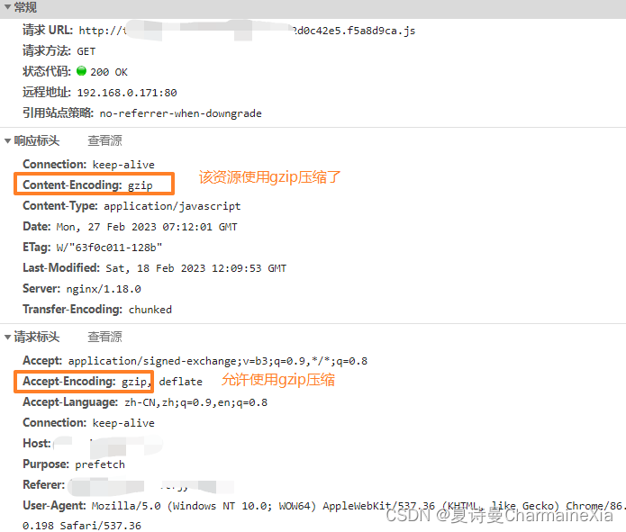 当然前提是客户端支持该压缩算法,服务端会通过客户端发送的请求头中的 Accept-Encoding 字段来确定是否支持。