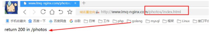 如果当你直接访问xxx.com/photos/index.html, 但是又有return指令, 会优先执行return指令 , 并不会返回photos/index.html的页面,直接返回return结果给你。