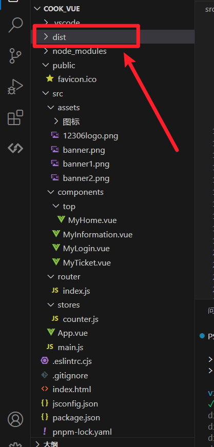 多了个dist文件夹就是打包成功了!