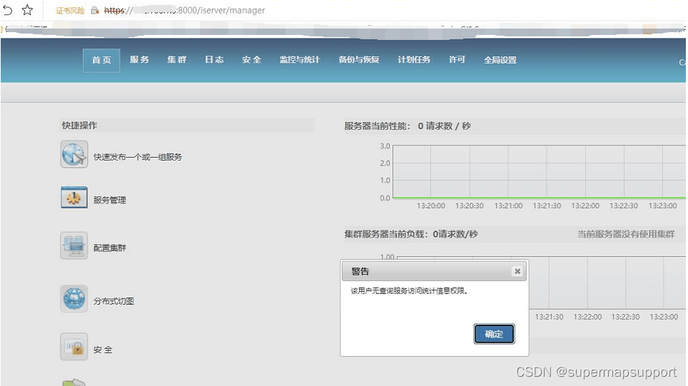(3)代理后访问服务管理界面提示“该用户无查询服务访问统计信息权限”