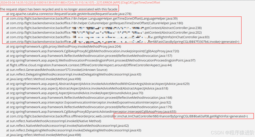 【2】不要在跨线程中使用request对象。可以使用-Dorg.apache.catalina.connector.RECYCLE_FACADES=true禁止复用。在项目的extraenv.sh中设置参数后,如果有访问已经被回收的request对象,就会抛出The request object has been recycled and is no longer associated with this facade异常,以此就能定位到问题