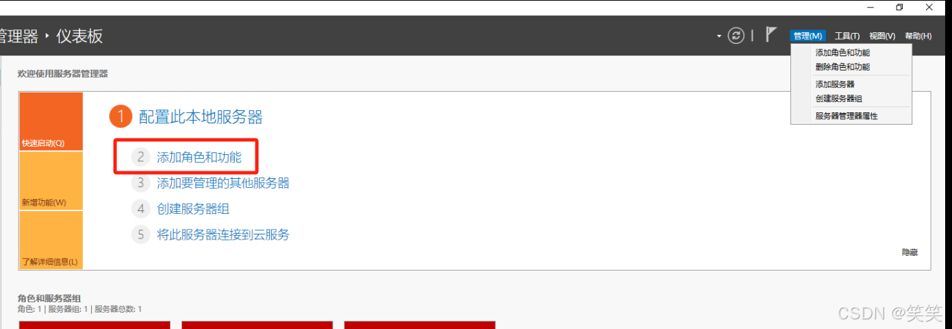点击 添加角色和功能。