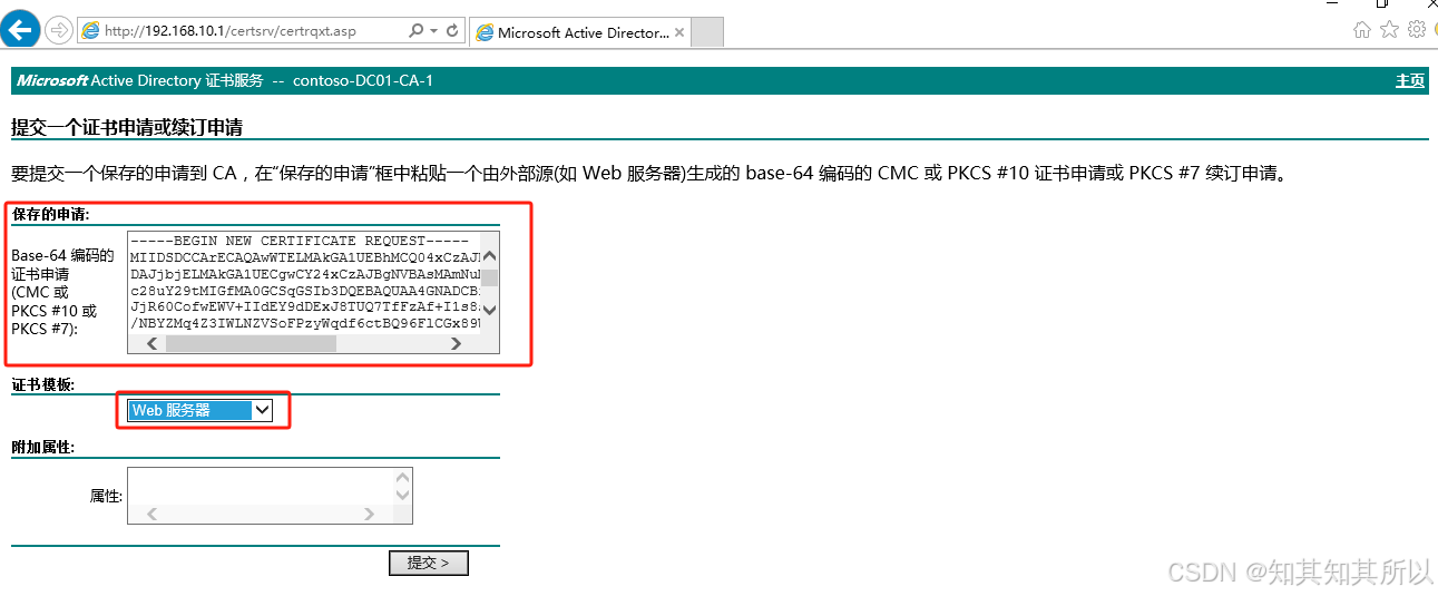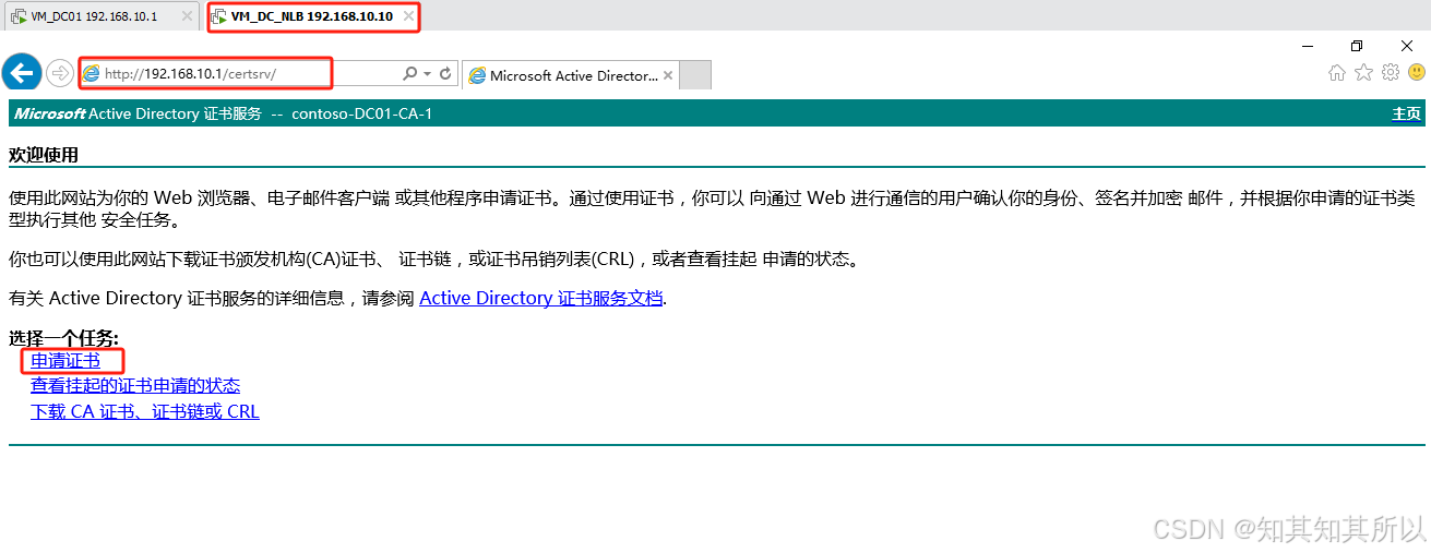 3.2.5、打开浏览器 ,输入:http://CA服务器IP/certsrv