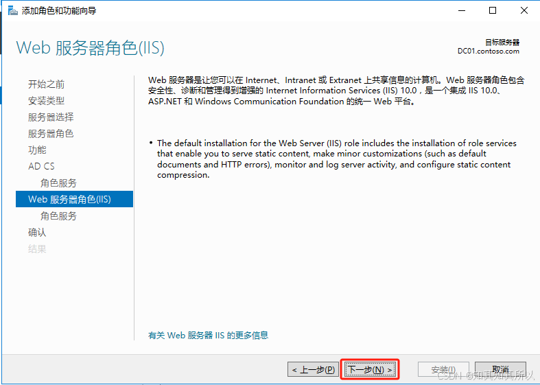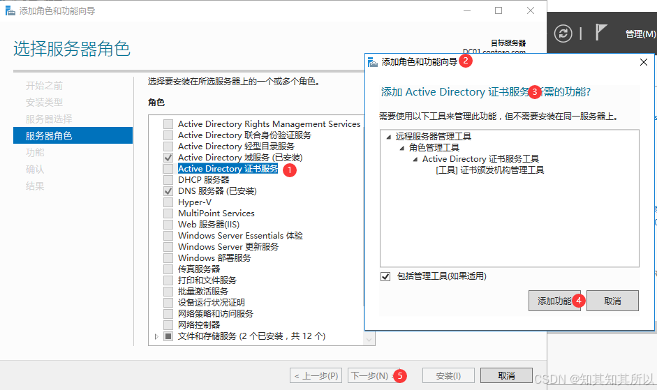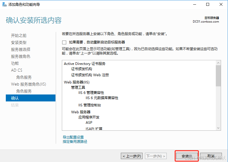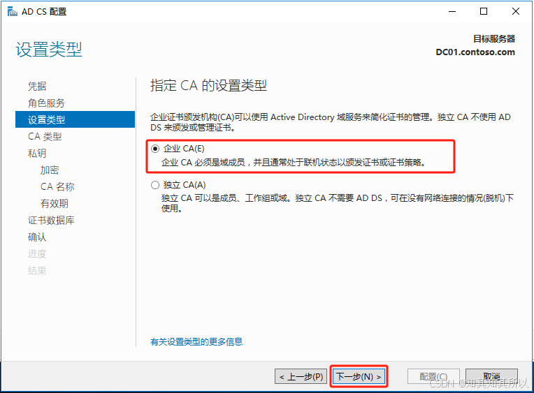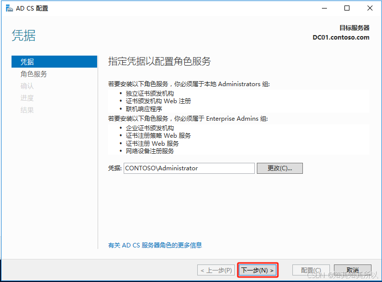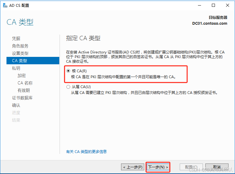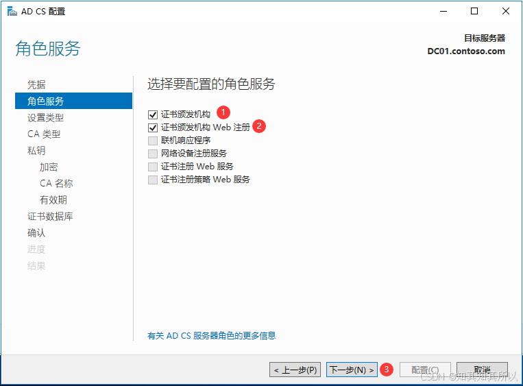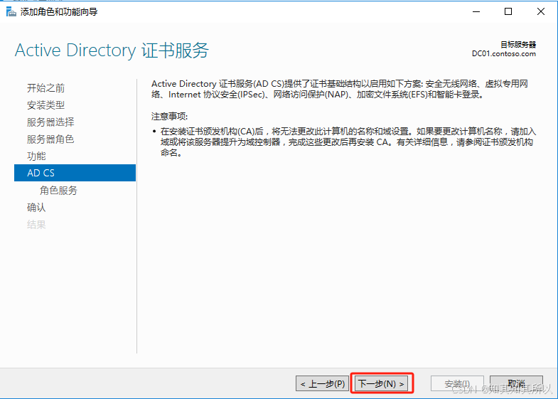 二、第一台域控制器:DC01 安装Active Directory 证书服务