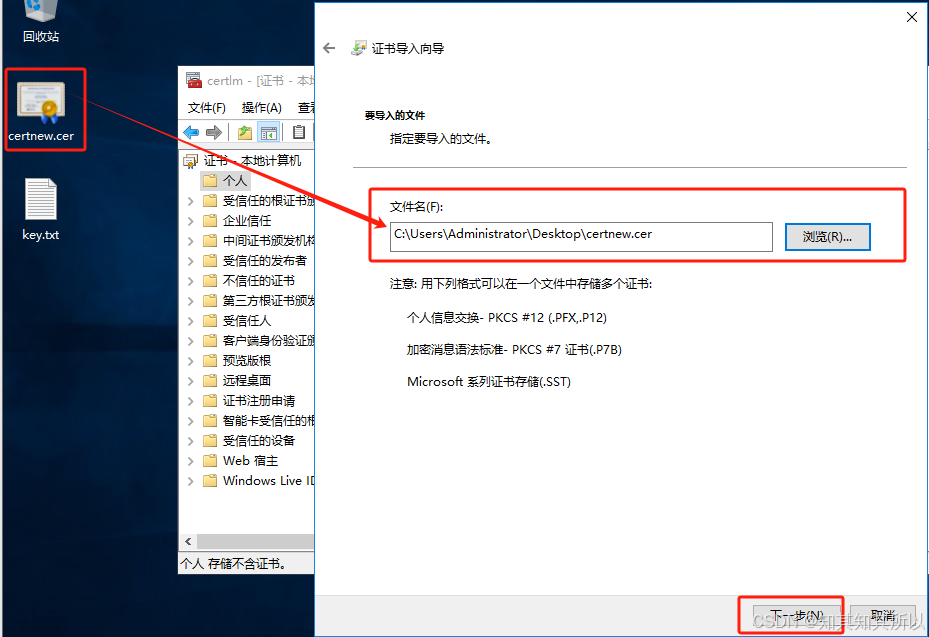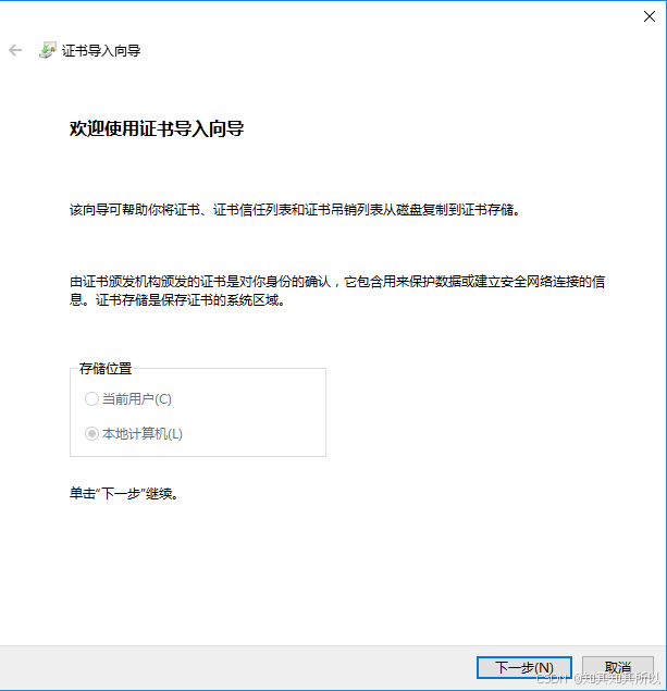 如果我们是作为管理员,要选择证书-本地计算机导入证书。