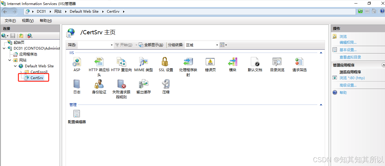 2.10.13、测试安装的证书服务:打开IIS,网站里出现CertSrv证明安装成功