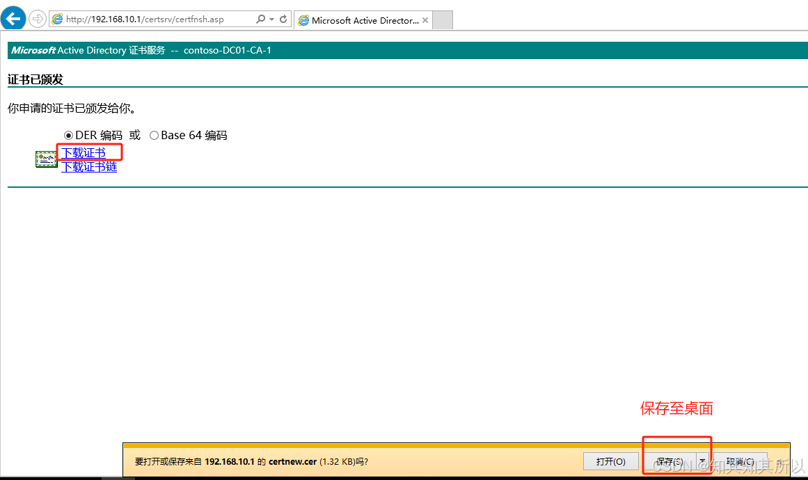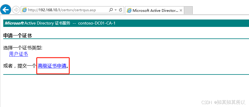 打开ie浏览器,输入http://192.168.10.1/certsrv