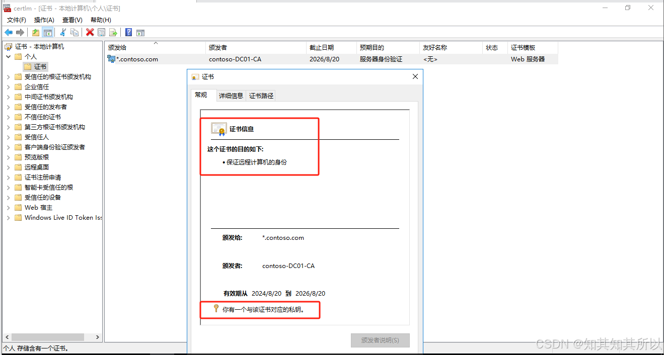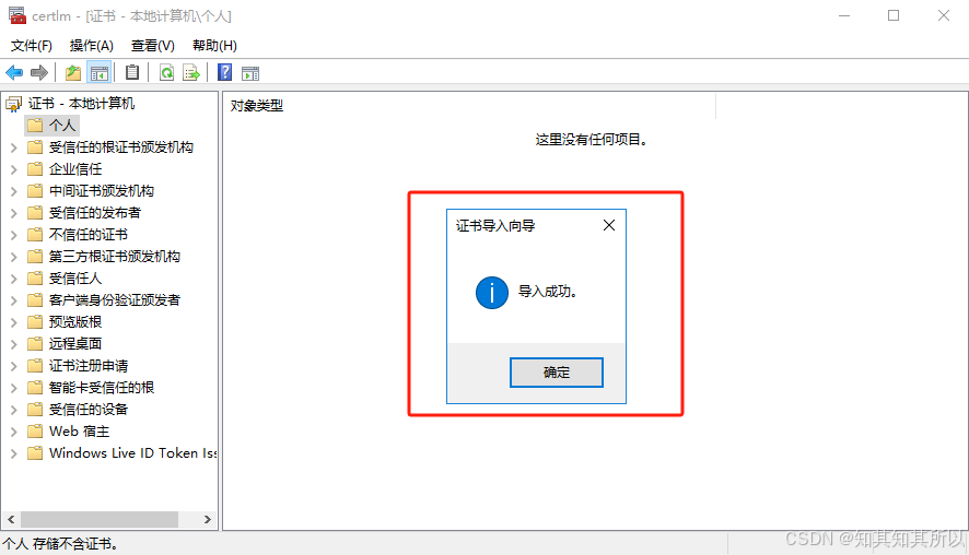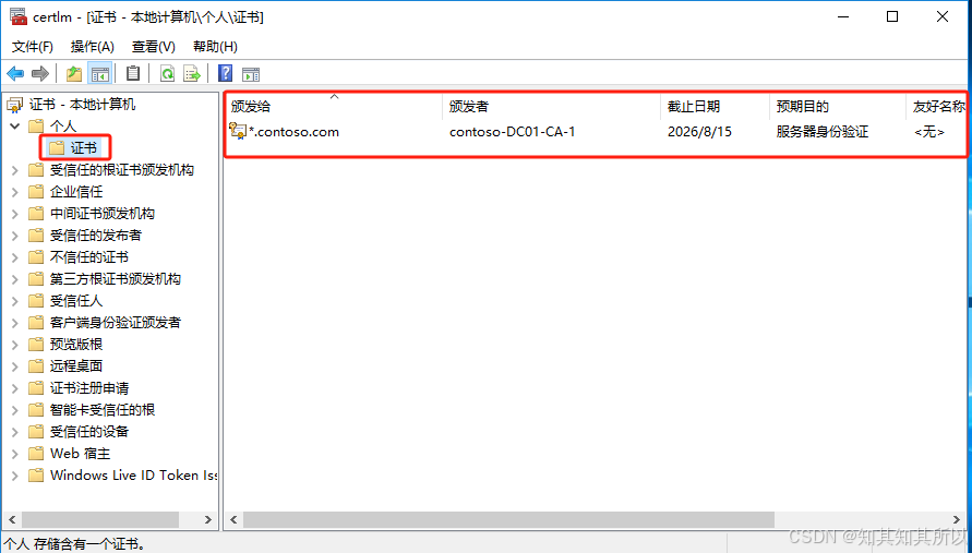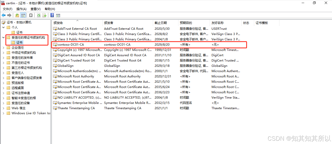 此时,在受信任的根证书颁发机构,证书目录下能找到该条颁发者信息。
