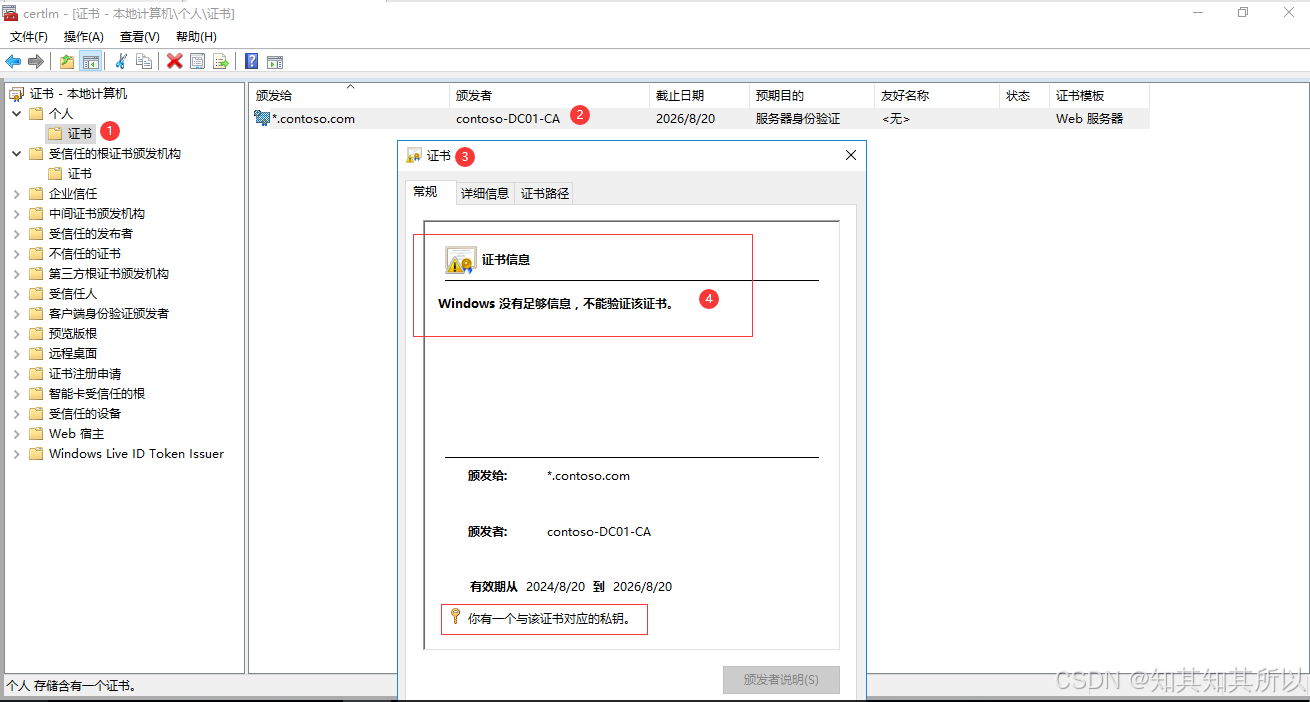 3.3.8、报错:(1)Windows没有足够信息,不能验证该证书。(2)证书状态:无法找到该证书的颁发者。