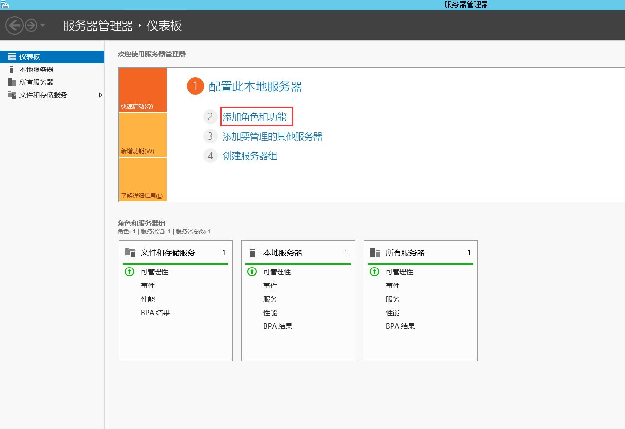 1.打开“服务器管理器”,选择“添加角色和功能”。