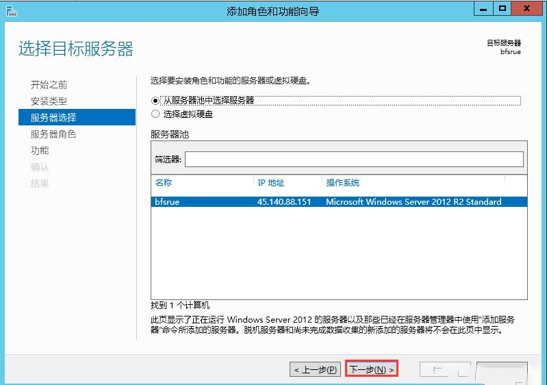 3.选择目标服务器,默认“从服务器池中选择服务器”,点击“下一步”。