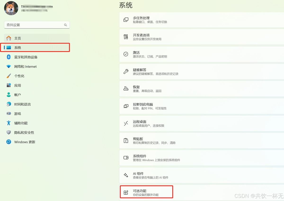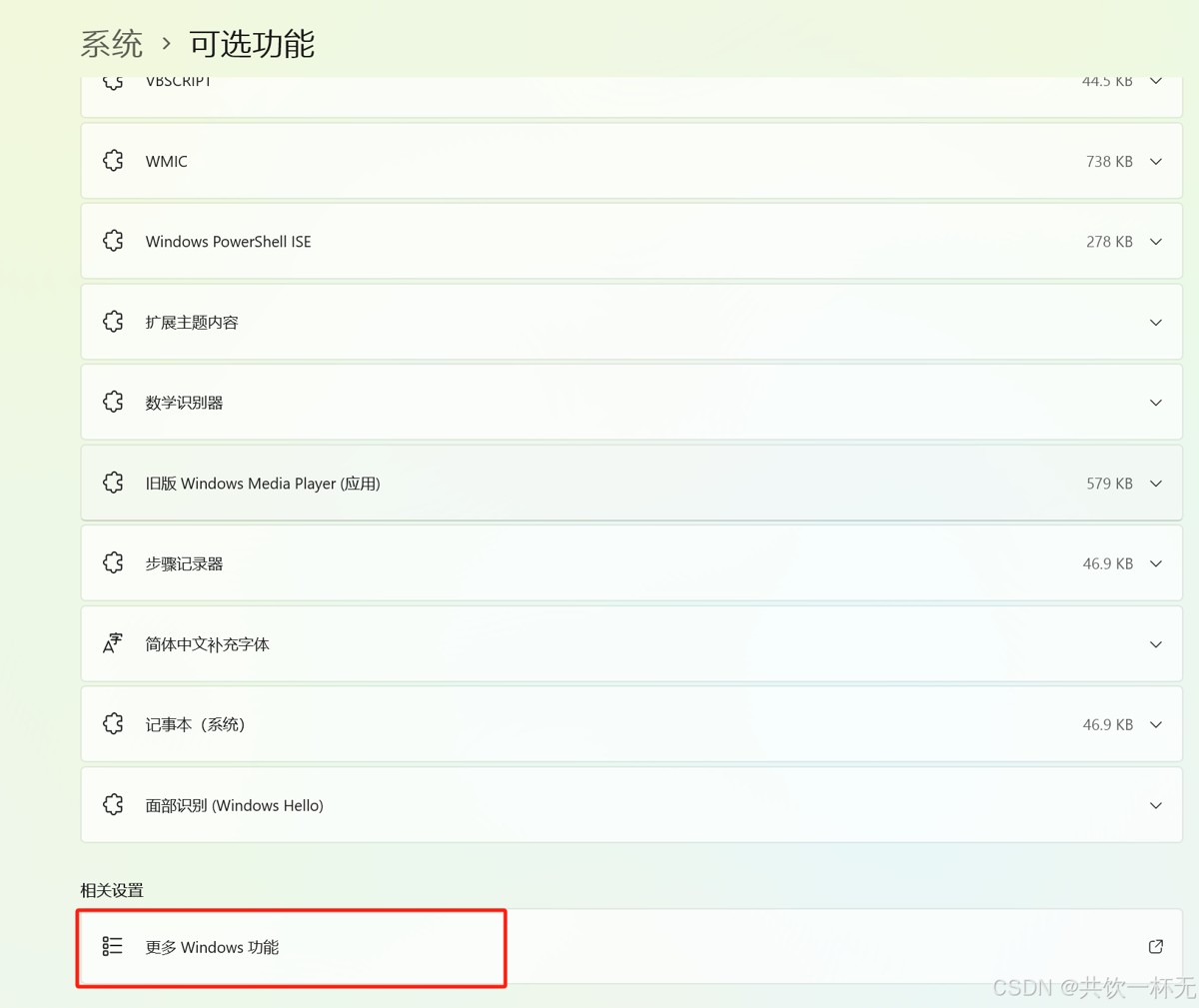 或者 Win + i,选择可选功能,然后选择更多Windows功能