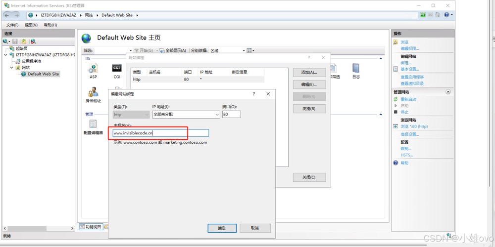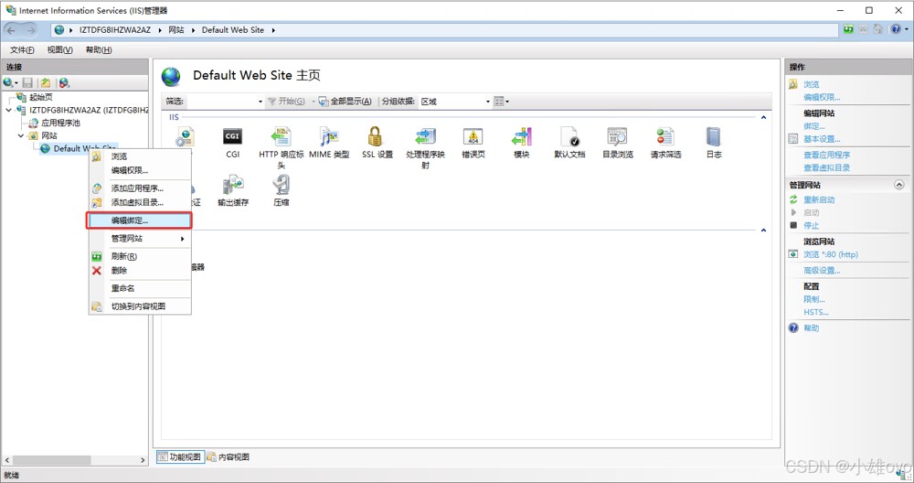 • 在IIS管理器中右键目标网站 → 选择「编辑绑定」