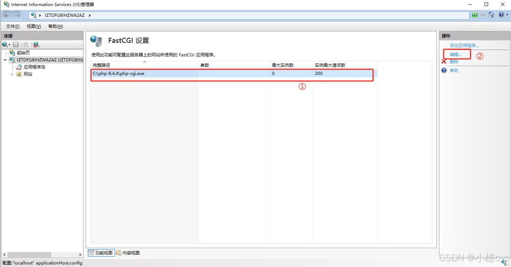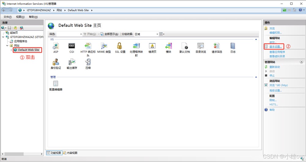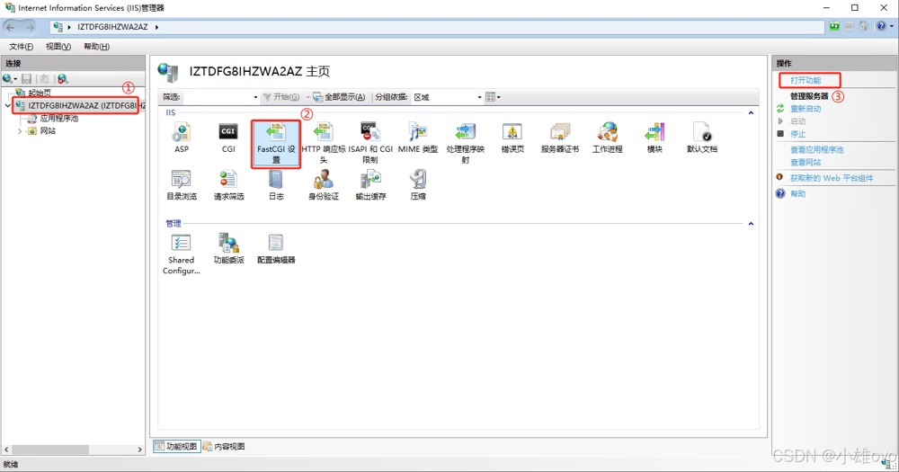 ①、打开IIS管理器;