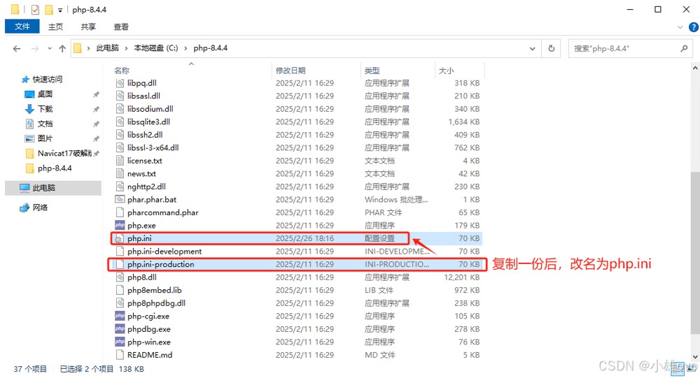 ⑥、复制php.ini-production并命名为php.ini;