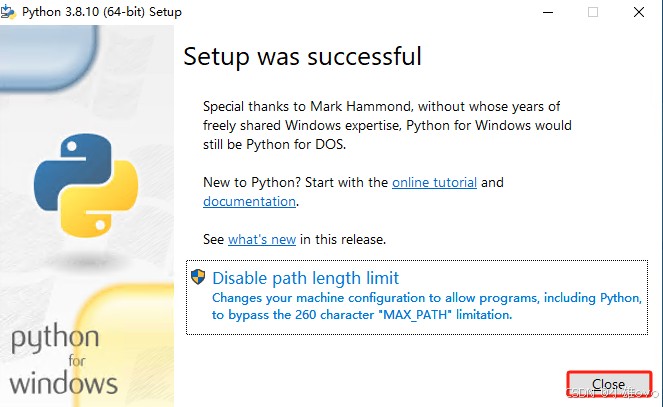 ⑤、单击“Close”,完成安装;