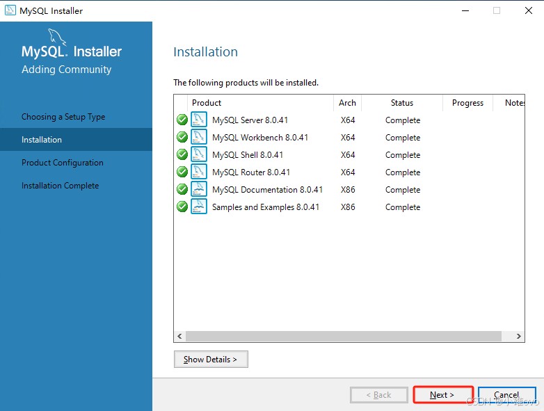 ⑤、设置MySQL的root密码后,点击“Next”;