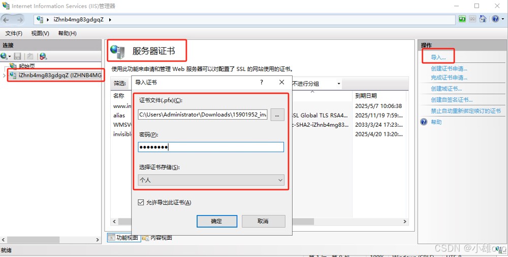2.导入证书到IIS: