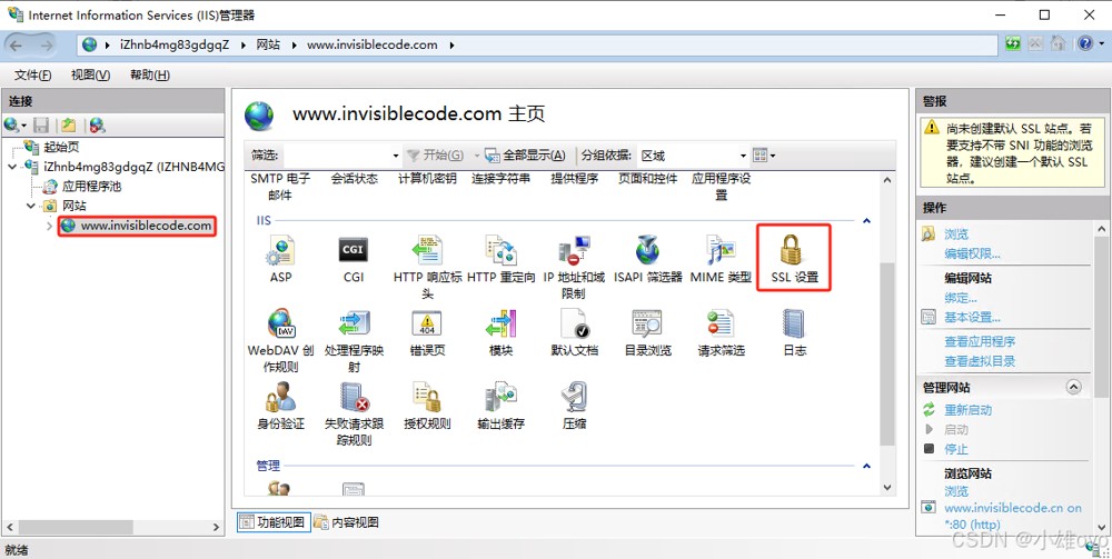• IIS管理器 → 点击服务器名称 → 打开「服务器证书」