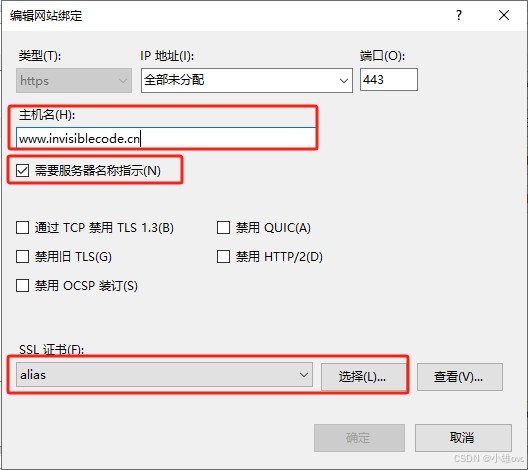 • 主机名填写已解析的域名(如 www.invisiblecode.cn)