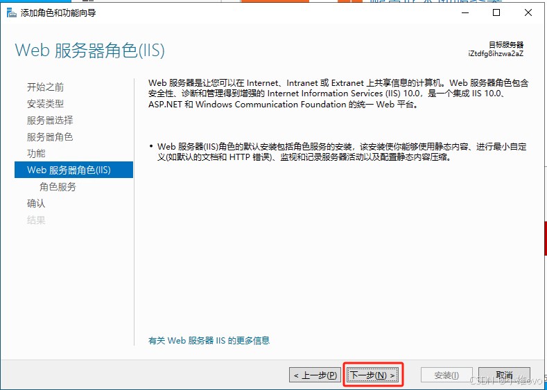 ⑥、Web 服务器角色(IIS)单击“下一步”;