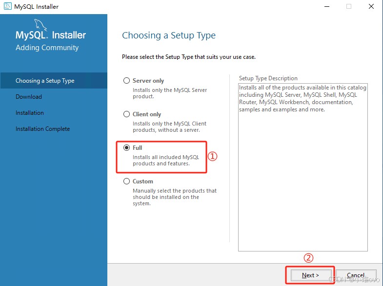 ③、选择“Full”,点击“Next”;